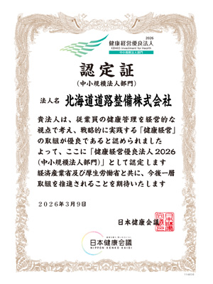 北海道道路整備㈱は、健康経営の推進が評価され、5年連続で健康優良法人に認定されました。